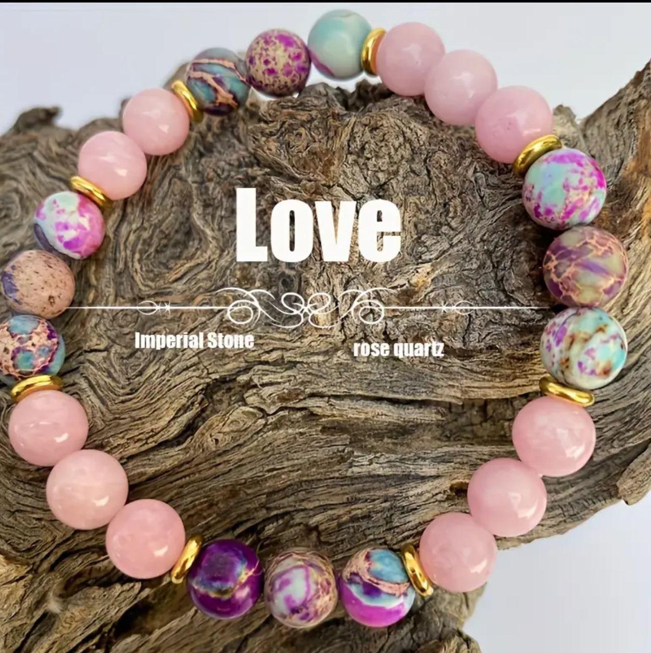 Colorful Love Charm Bracelet, Vibrant Stone And Rose Quartz Beads