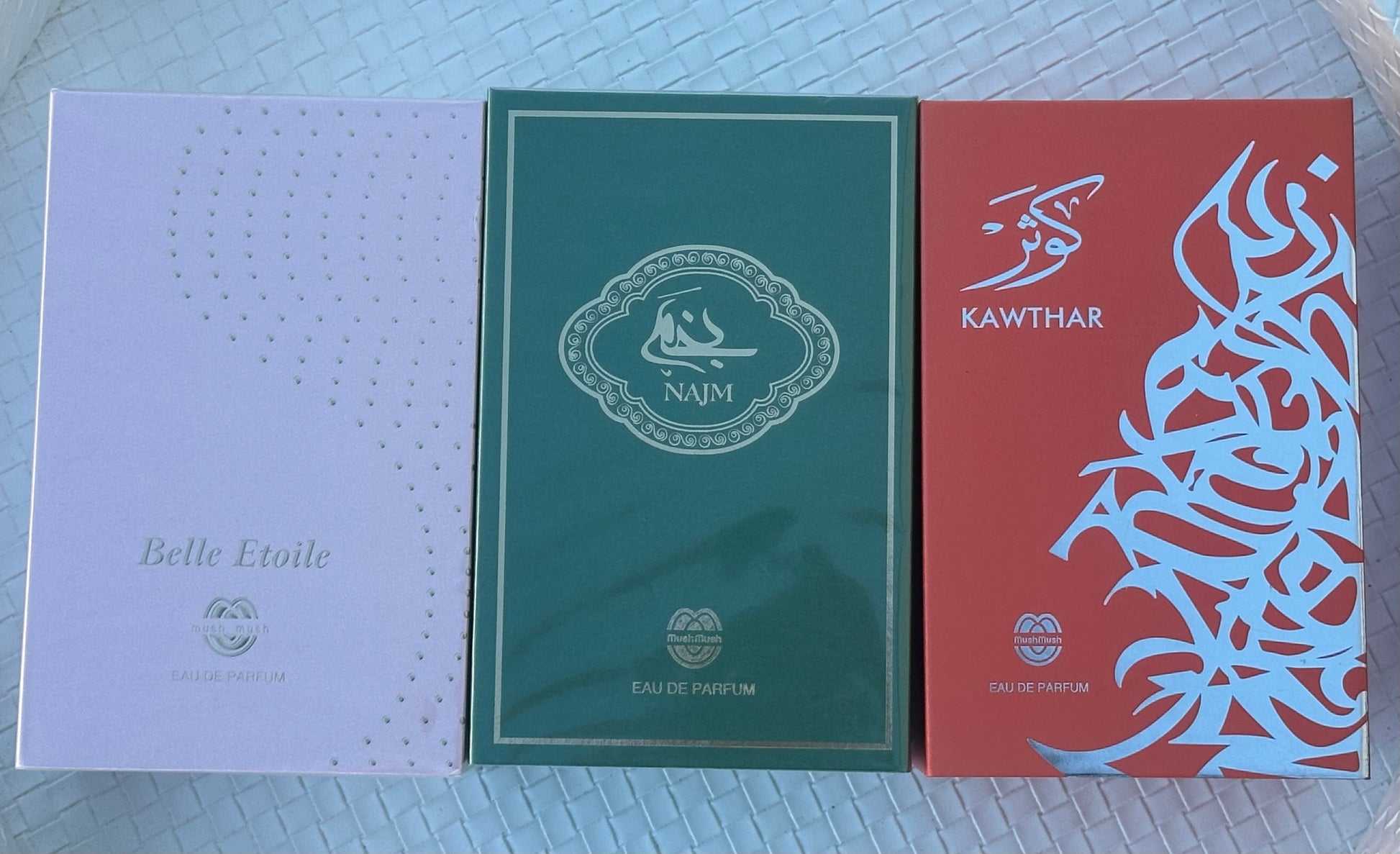 Indulge in an irresistible fragrance experience with this exclusive 3-for-1 perfume set, featuring Belle Etoile, Najm, and Kawthar. Three unique moods, three signature scents — all for the price of one.
