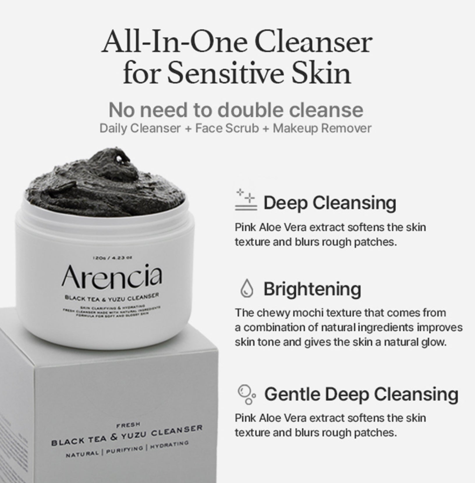 ARENCIA FRESH BLACK TEA & YUZU RICE MOCHI CLEANSER 120G / 4.23 FL.OZ