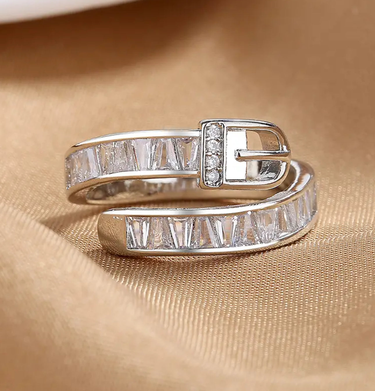 Creative Belt Buckle Zircon Ring 14K Plated Personality Finger Ring For Women Fine Jewelry