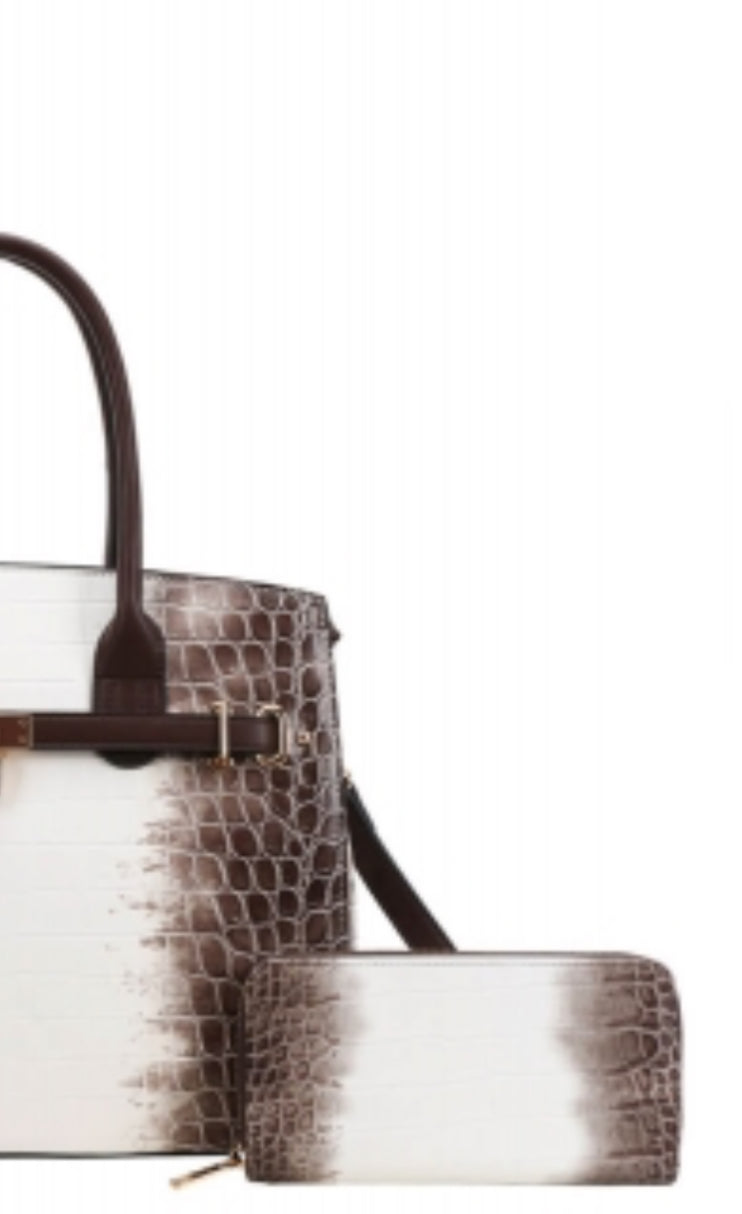 2 In 1 Crocodile Satchel Wallet Set - High Quality Color Block Crocodile Print Top-Handle Satchel Wallet SET Dimension 14*11.5*5.5 Optional adjustable shoulder strap Faux-leather Gold-tone hardware 1 rear zip pocket Closure - zipper Matching wallet included High-Quality Boutique Bag 2 pcs set