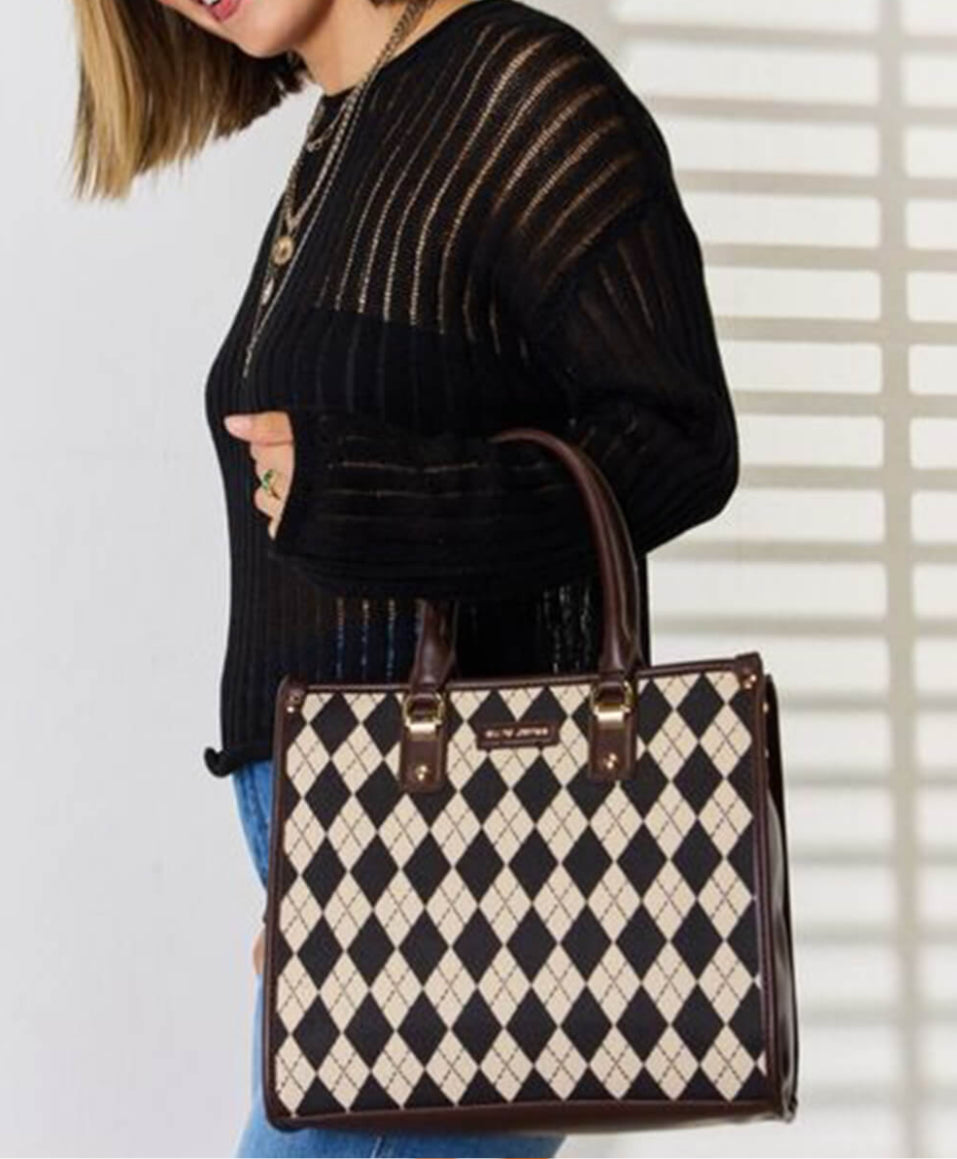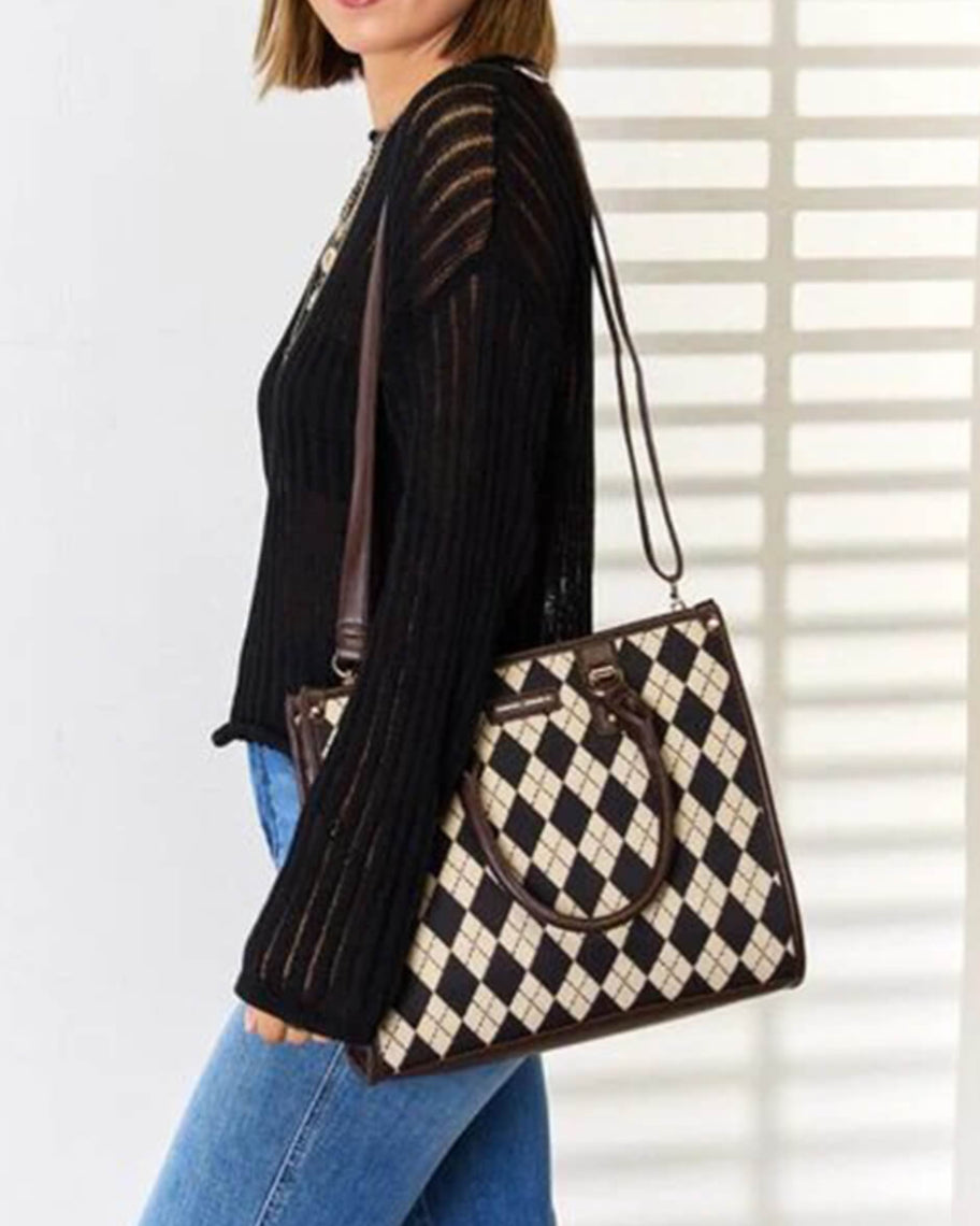 David Jones Argyle Pattern PU Leather Handbag 6891-4