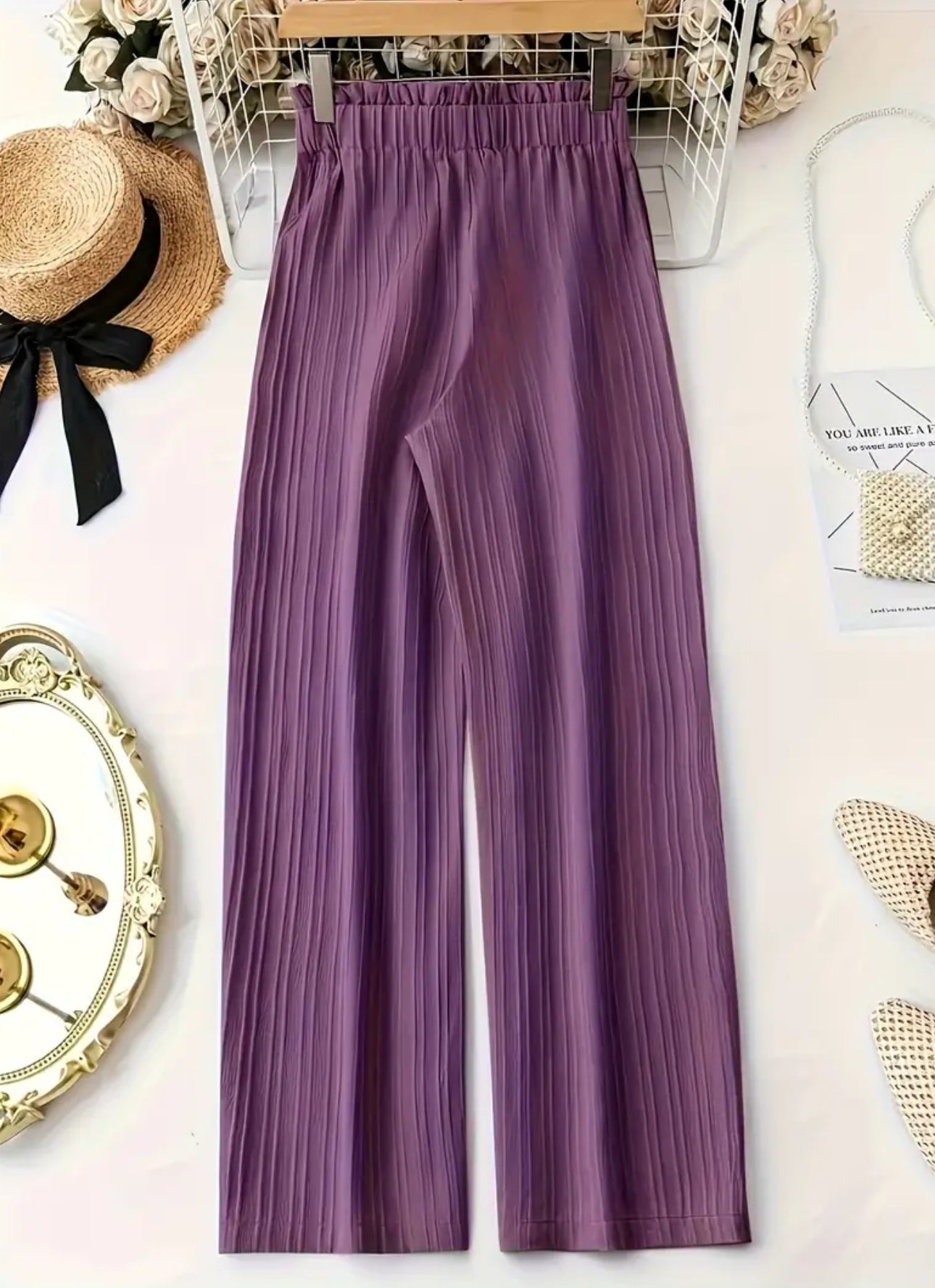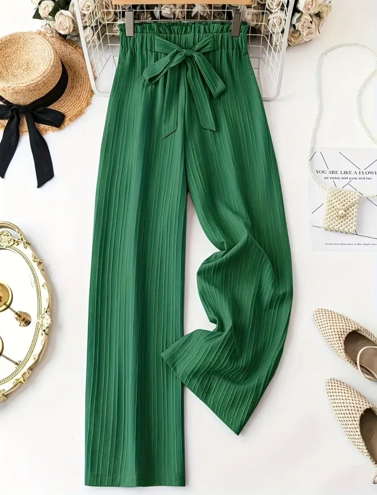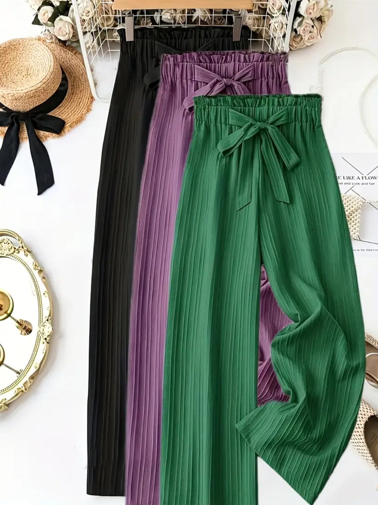 Elegant Solid Color Pants with Lace-Up Detail - Comfortable Loose Fit, Elastic Waist, Long Casual Trousers for Women - Casual Outfit Pants | Laceup Detailing | Elastic Waistband