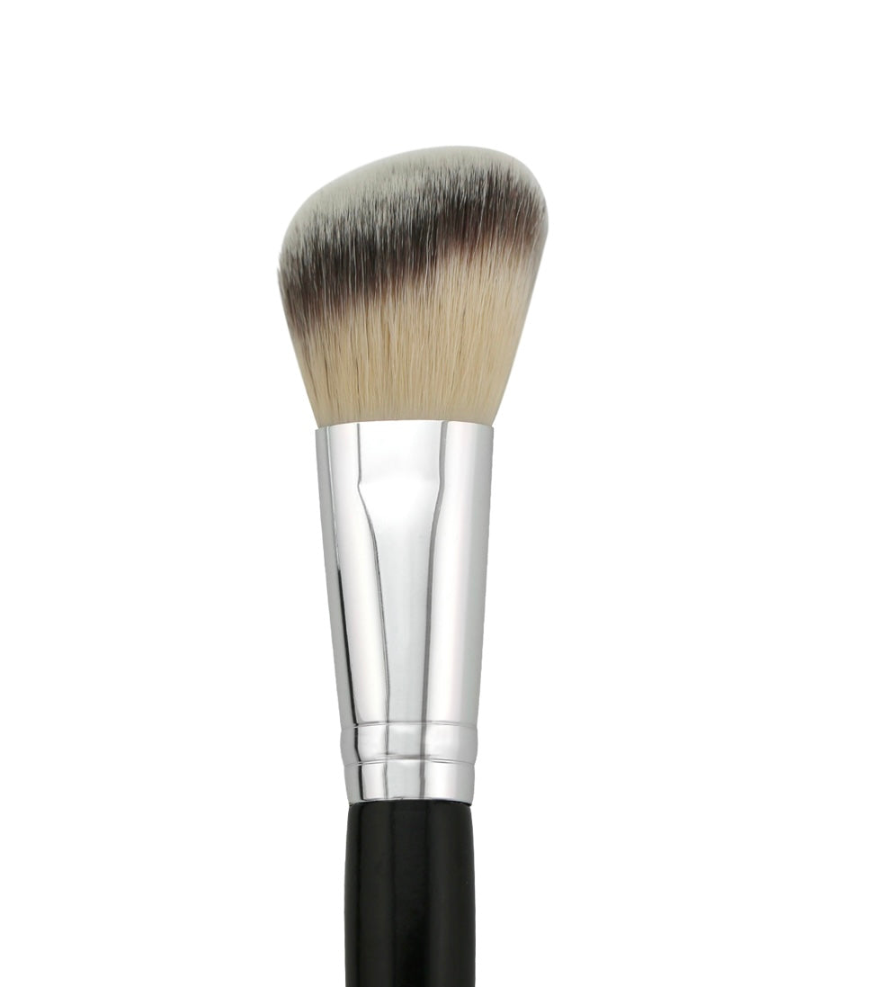 The Studio Highlight Contour Brush is designed to flow with the high points of the face, making it the perfect highlighting and blush brush.