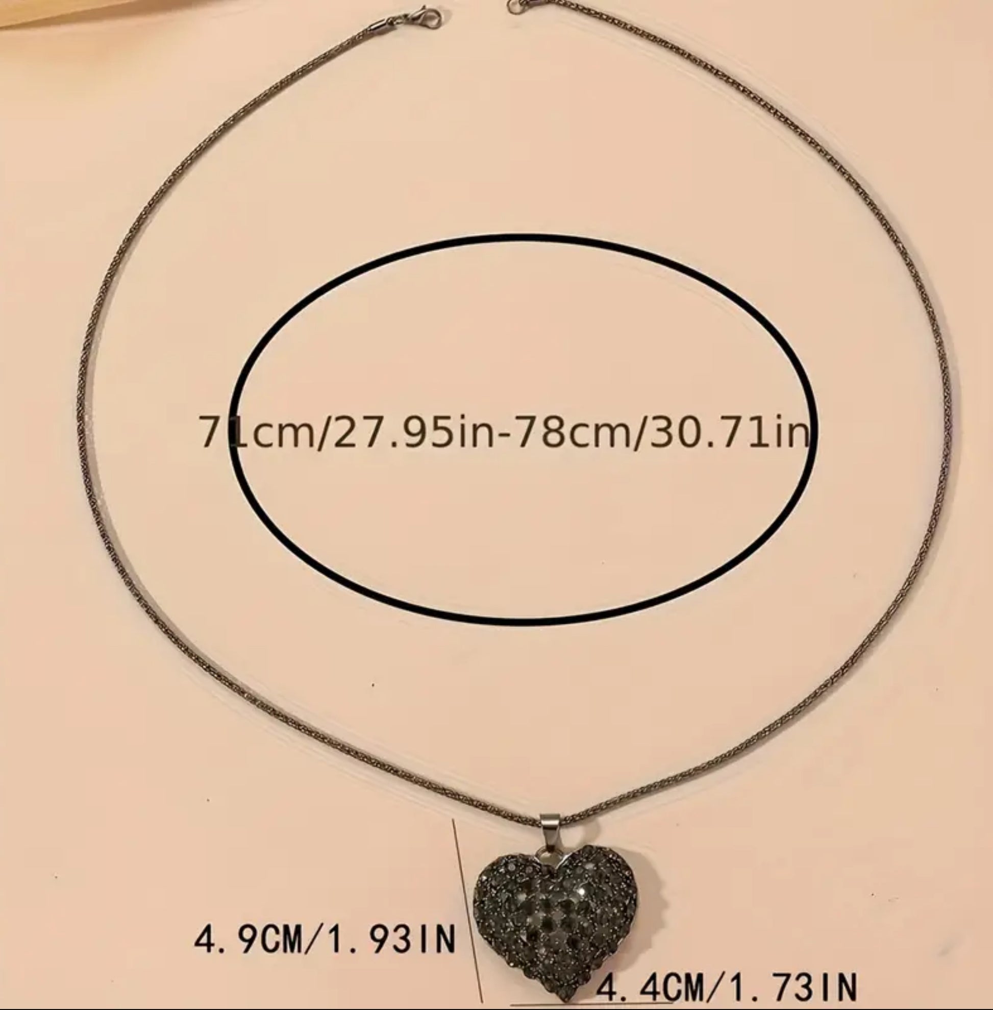 Black Long Chain Elegant Rhinestone Heart Pendant Necklace