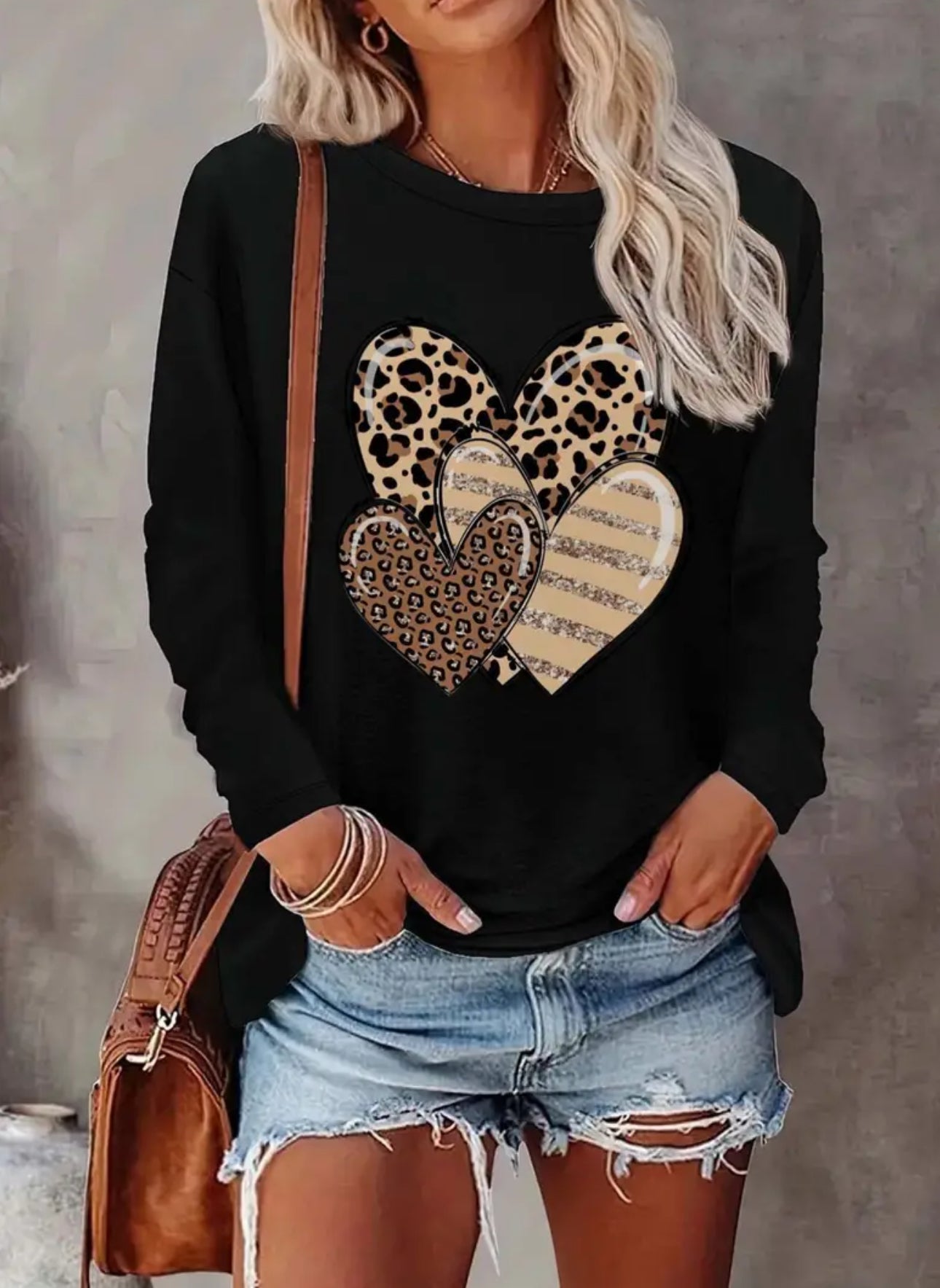 Women's Black Christmas Wine Graphic & Santa Hat Print T-Shirt - Loose Fit Long Sleeve Crew Neck Casual Top with H-Line Silhouette, Breathable 100% for Holiday Party & Casual Attire, Machine Washable Autumn Winter Fashion, Seasonal Clothing, Anime Design, Soft Material, Comfortable Fabric, Printed Shirt