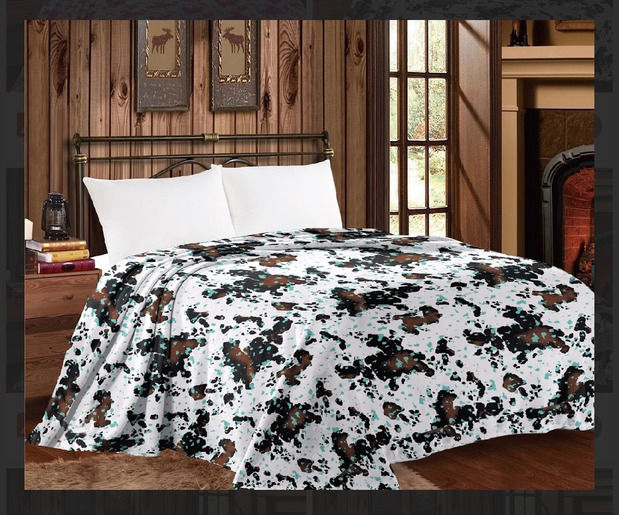 TURQUOISE ACID WASH COW - KING MIA BLANKET
