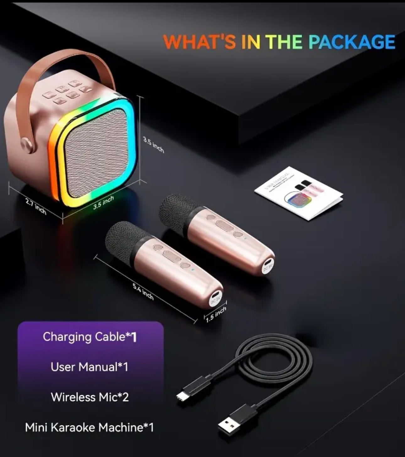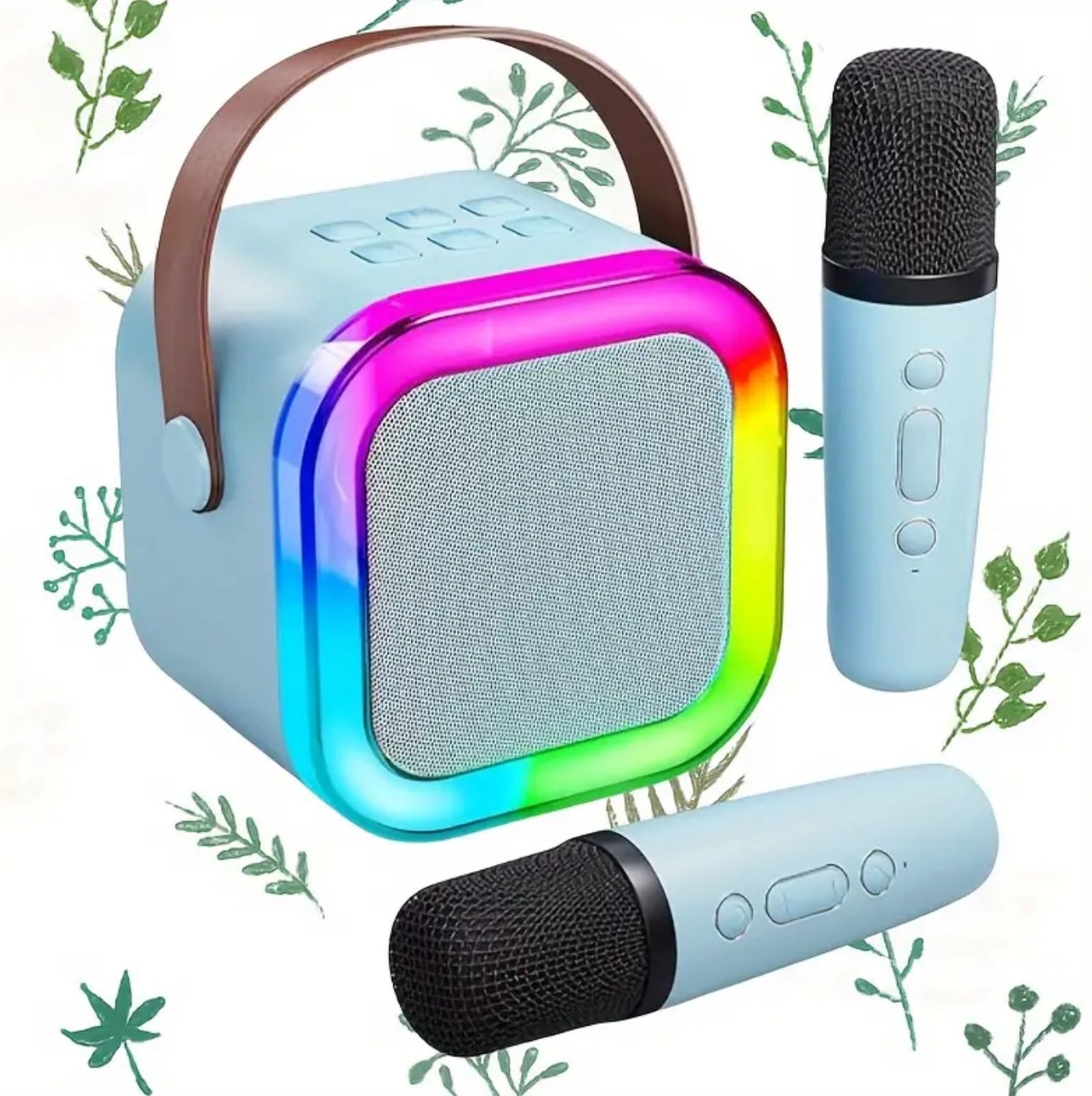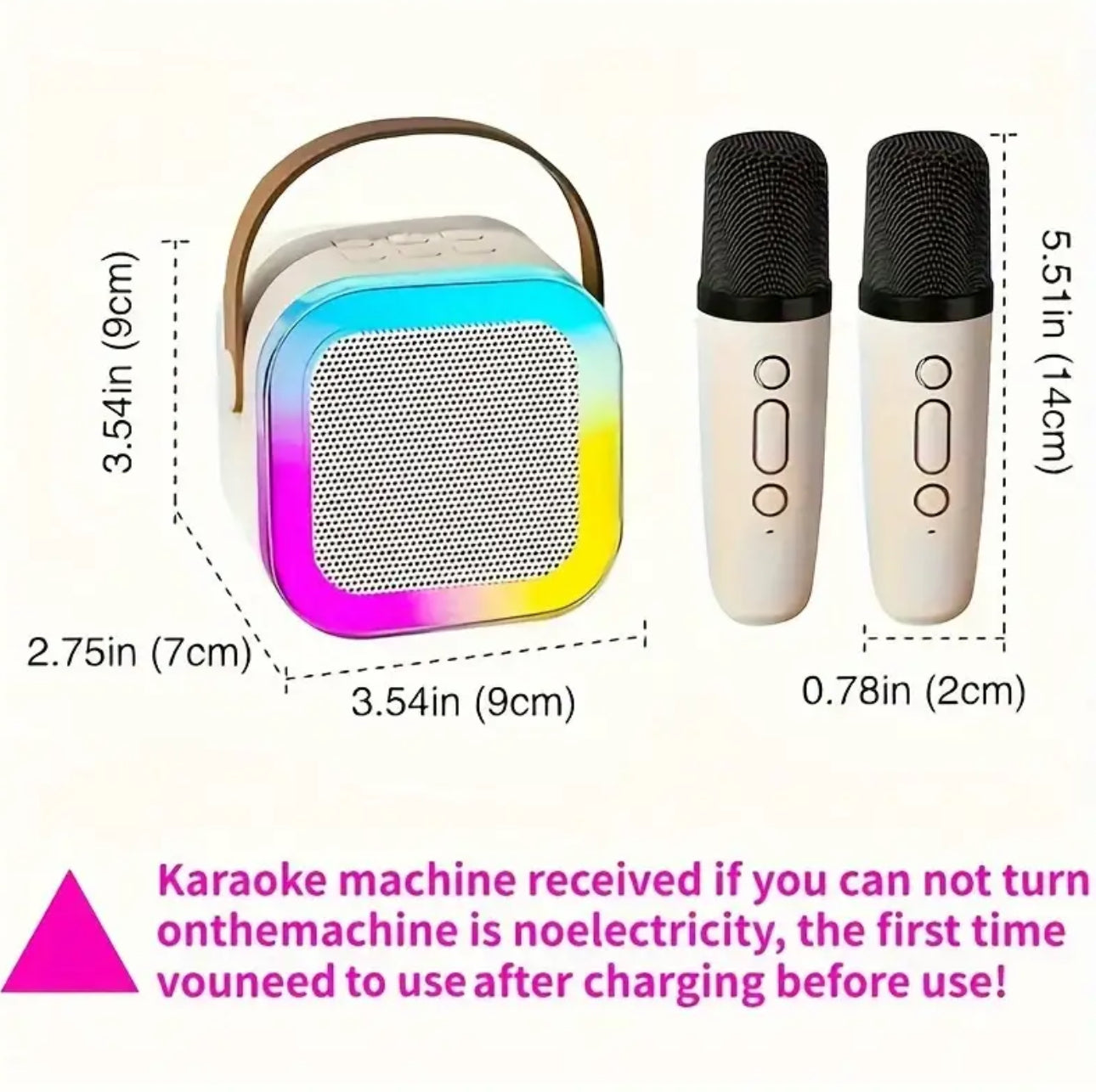 Wireless Karaoke Speaker - Portable Mono Audio System with LED Light Show, Dual Wireless Microphones, 36V Max Voltage, USB Rechargeable 18650 Lithium Battery - Party Speaker for Holidays and Birthdays