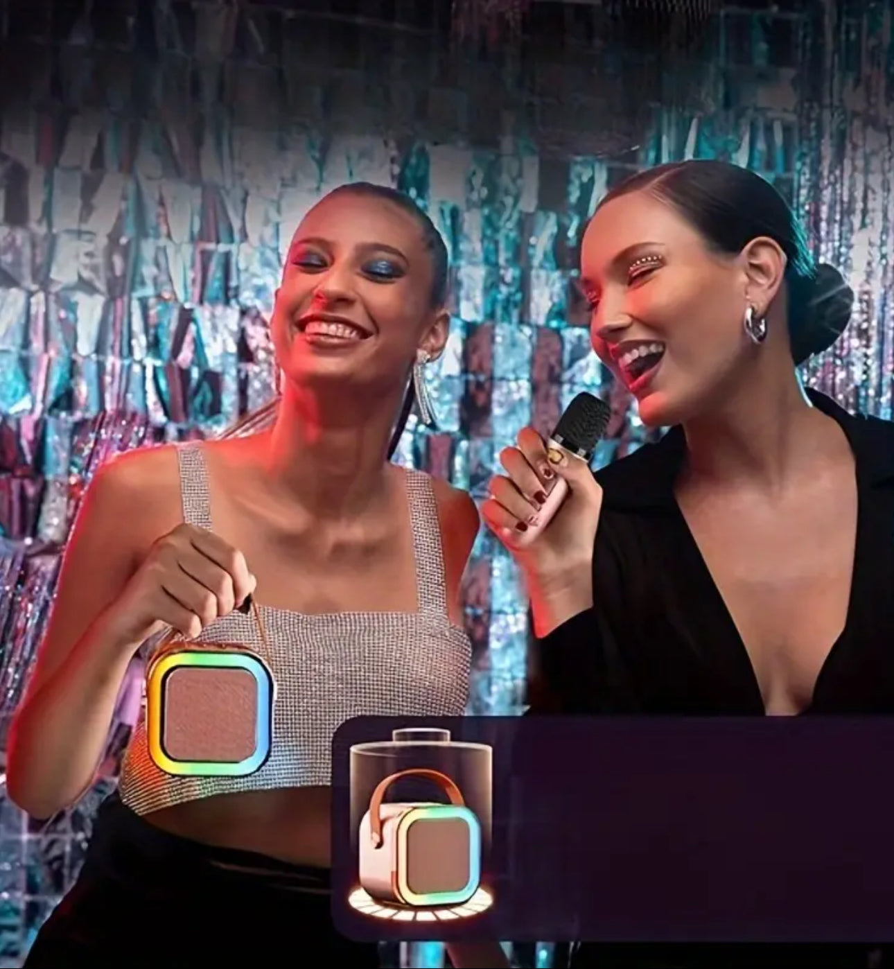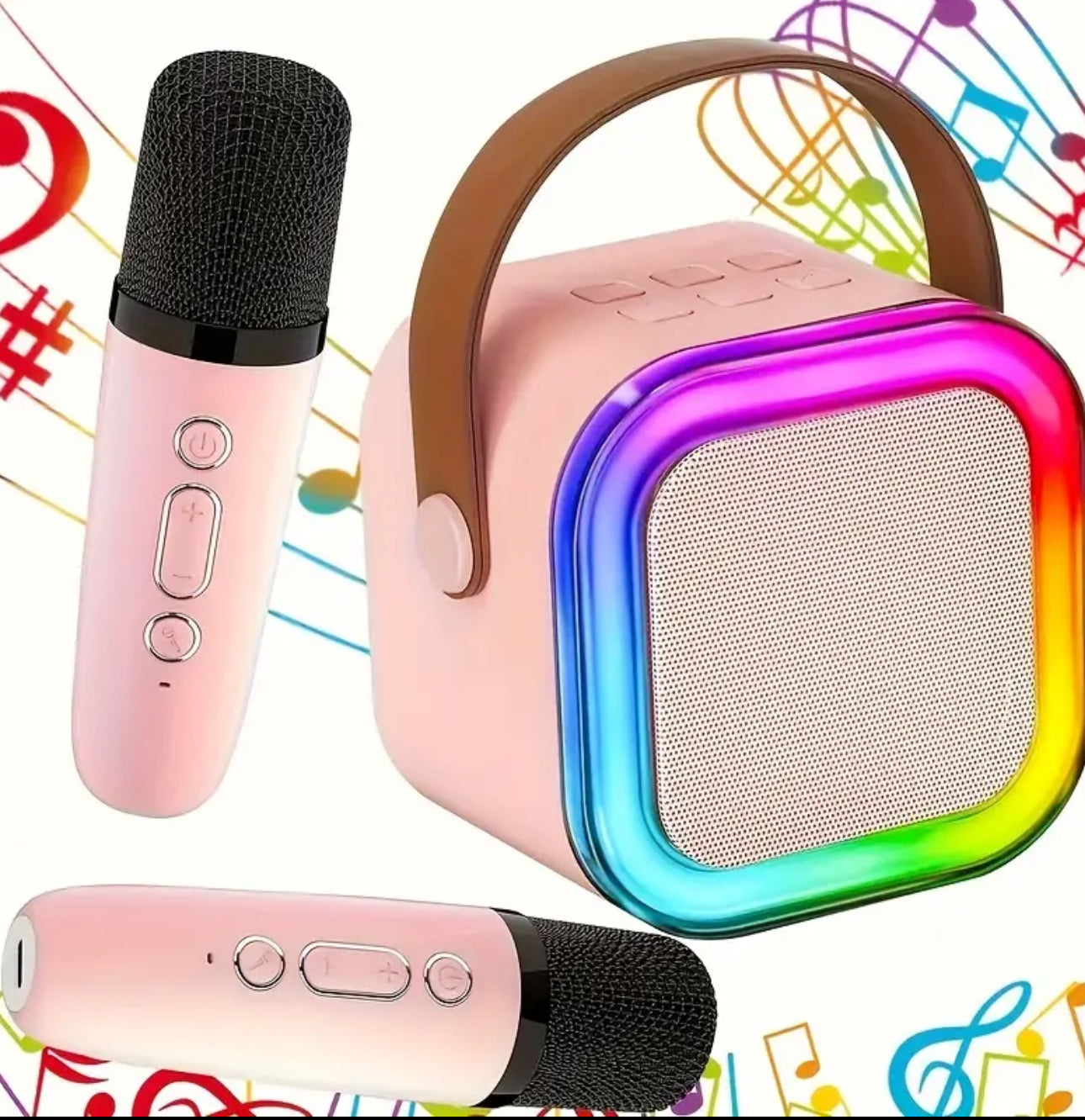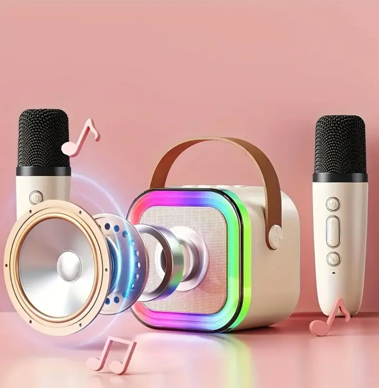 Wireless Karaoke Speaker - Portable Mono Audio System with LED Light Show, Dual Wireless Microphones, 36V Max Voltage, USB Rechargeable 18650 Lithium Battery - Party Speaker for Holidays and Birthdays